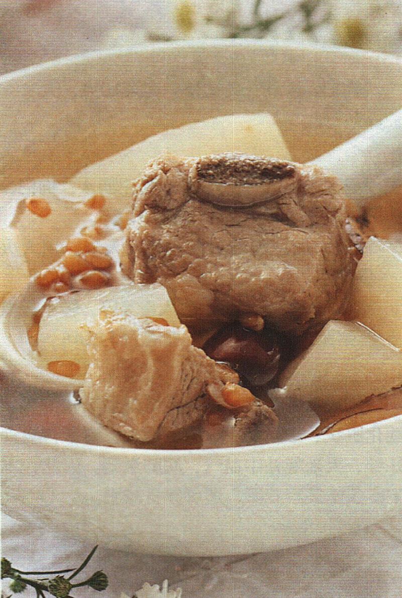 3、将所有材料放入锅中,加适量水,以大火煮沸后转小火炖约2小时,加盐调味即可。