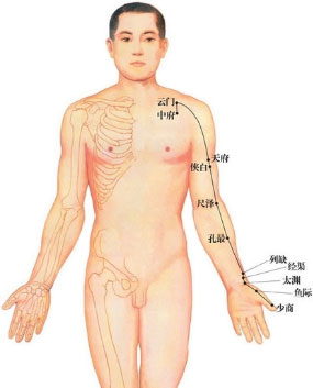 血气流注于肺,称为[手太阴肺经]。中医号脉从肺经开始。人体进入阳盛阴衰之时。新鲜血液通过肺送往全身,所以人在清晨面色 红润,精神充沛